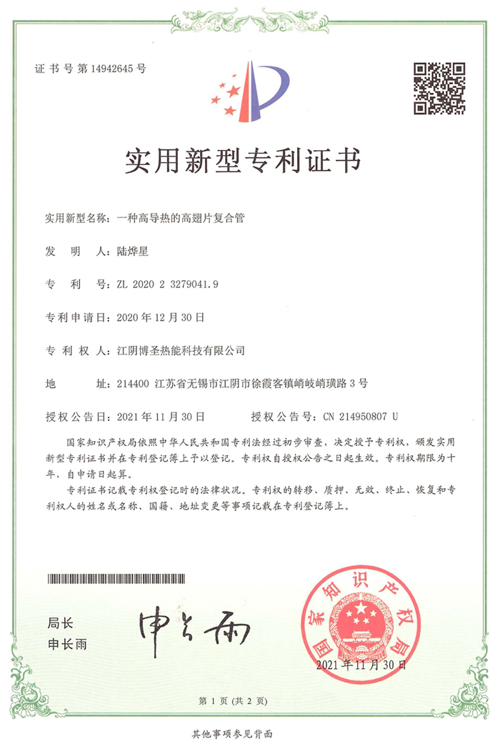 歡迎光臨江陰博圣熱能科技有限公司!從事激光焊接翅片管,金屬擠壓翅片管,螺旋纏繞翅片管,高頻焊翅片管,翅片換熱管,不銹鋼散熱管生產加工和銷售